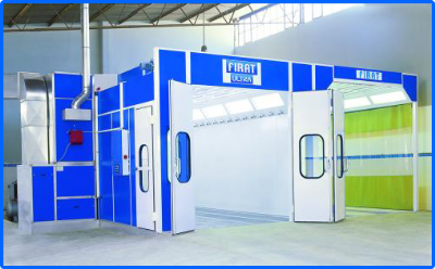 Düşük basınç altında çalışan hava kanallı boya tabancası ile aracın boyandığı ve kurutulduğu Boyama ve Kurutma kabinidir. Hava tavan filtreleme sistemi ile tesis dışından alınır. Boya partikülleri paint stop filtrelerle tutularak havadan ayrıştırılır. Kabin mazot brülörü ve fan - motor üniteleri ile donatılmıştır. Kabin girişi önünde giriş rampası ile birlikte, metal şase veya bir kazı çalışması hava sirkülasyonu için ünitelere bir kanal bağlantısı yapılarak tesis zemini üzerine monte edilebilir